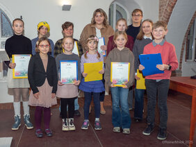 Nach den jeweils drei Vorträgen gab Inga Faust bekannt, welcher Text von der Jury mit dem Hauptpreis ausgezeichnet wurde. Alle Nominierten bekamen eine Urkunde und Büchergutscheine, die mit dem Hauptpreis ausgezeichneten Teilnehmenden einen Gutschein für einen Ausflug ins Ozeaneum in Stralsund. Neu in diesem Jahr war auch, dass jeder Text von der Jury angekündigt und gewürdigt wurde. Insgesamt zwölf Kinder, Jugendliche und junge Erwachsene konnten sich so über Preise freuen. Und die ausgezeichneten waren aus dem ganzen Bundeland angereist, aus Schwerin und Wittenförde, aus Prohn und Greifswald, einige kamen auch aus Rostock – sie hatten den kürzesten Weg.
